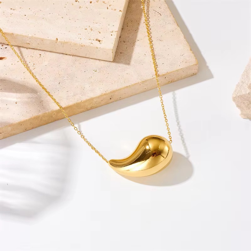 Un collier doré à pendentif sculptural en forme de vague, aux lignes fluides et modernes. Une pièce audacieuse et raffinée qui apporte une touche d’art et d’élégance à chaque tenue. ✨
