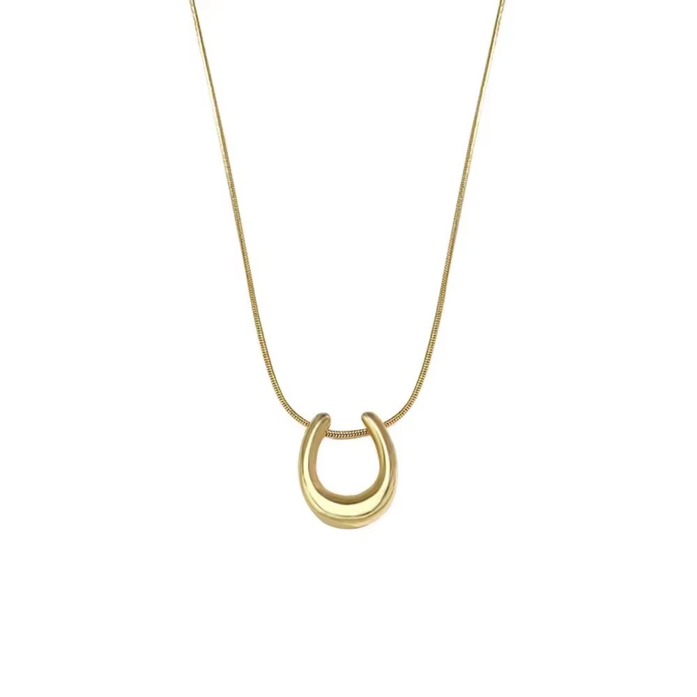Un collier doré au pendentif arc épuré, conçu pour sublimer le cou avec une touche de modernité et de finesse. Une pièce minimaliste et intemporelle, parfaite pour un style chic au quotidien.