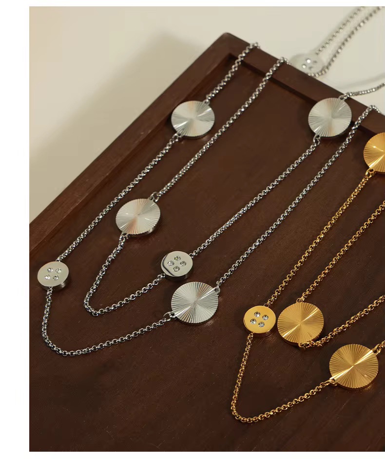 Un collier Doré multirangs orné de médaillons géométriques aux reflets lumineux. Une pièce moderne et sophistiquée qui apporte une touche d’éclat à toute tenue. ✨